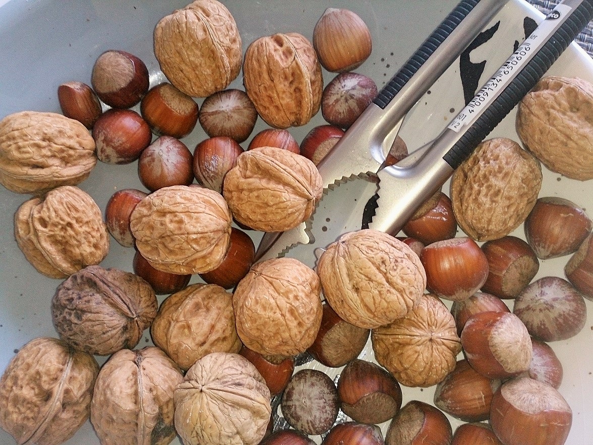 Auch Nüsse aus der frischen Ernte sind wieder zu haben. Das Selberknacken hat etwas besonderes wie ich finde. Um an den begehrten Kern zu kommen, muss man die Sache nun selbst in die Hand nehmen. Dabei gibt es auch weniger schöne Überraschungen, wie im echten Leben, bittere Nüsse zum aussortieren. Den großen Rest lassen wir uns schmecken.